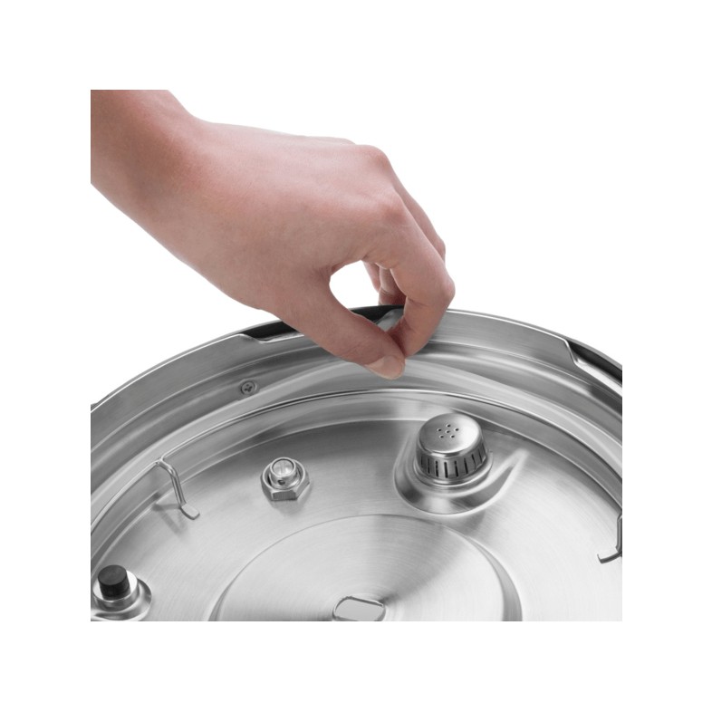 Bao gồm giỏ hơi, coaster cho giỏ hơi và cốc đo (- nồi chống võng, nồi nấu có thể tháo rời an toàn cho máy rửa chén)