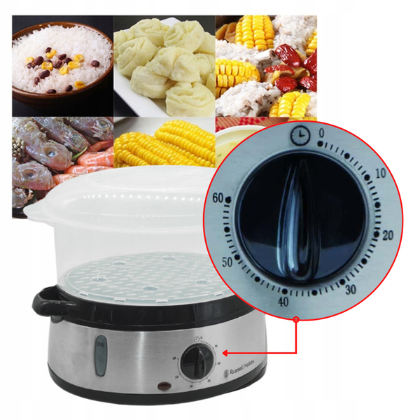 Nồi Hấp Điện Russell Hobbs 19270-56 được trang bị công tắc hẹn giờ hấp cực kỳ đơn giản dễ sử dụng với thời gian lên đến 60 phút. Công tắc tự động chuyển về trạng thái tắt khi hết giờ, kèm với âm báo kết thúc chu kỳ hấp. Ngoài ra, nồi hấp điện còn có đèn báo nguồn tiện lợi.