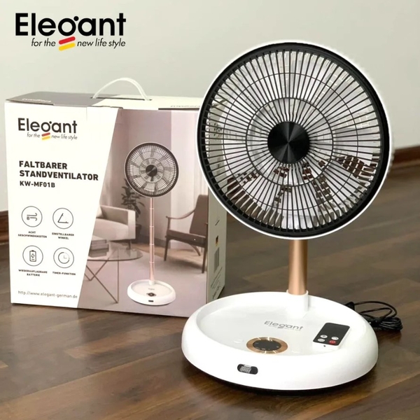 Quạt gấp thông minh Elegant tích điện chạy pin lên tới 8h có thể cung cấp gió mát cho gia đình bạn mỗi khi mất điện. Sản phẩm siêu tiện lợi và mang được đi xa bởi quạt có thể tăng giảm chiều cao linh hoạt và gấp gọn gàng khi không có nhu cầu sử dụng.