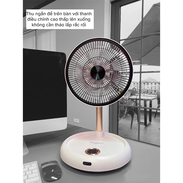 Quạt gấp thông minh Elegant tích điện có thể kéo dài, thu hẹp lại với chiều cao tối thiểu là 13,8cm, tối đa là 90cm, có thể điều chỉnh độ cao tùy thích theo nhu cầu, có thể mang đi sử dụng bất cứ đâu. Nhỏ hơn và gọn hơn, phù hợp những những lúc mất điện. Bạn dễ dàng để trên bàn, trong nhà, trong văn phòng, hay ngay cả khi bạn đi chơi đi picnic cũng rất phù hợp để mang theo.