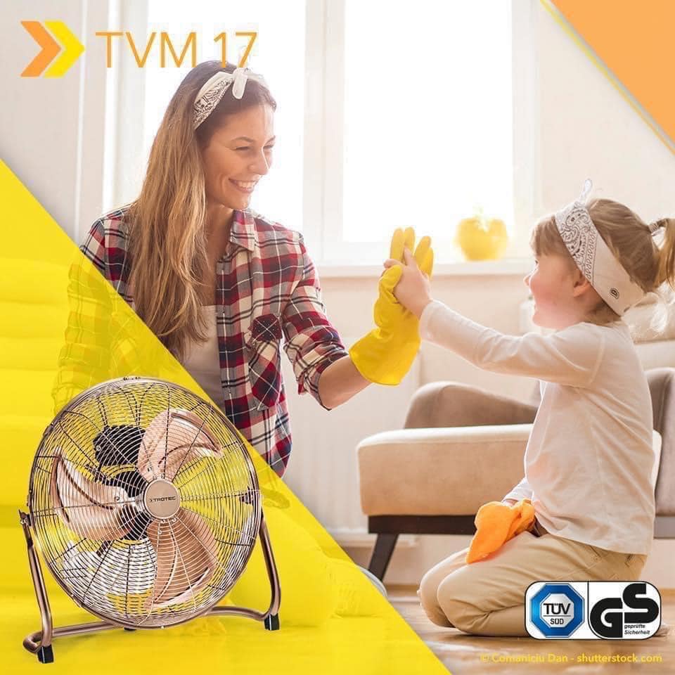 - Quạt sàn Trotec TVM 17 có đường kính cánh 45 cm và nhờ kích thước nhỏ gọn, nó có thể được sử dụng ở hầu hết mọi nơi.