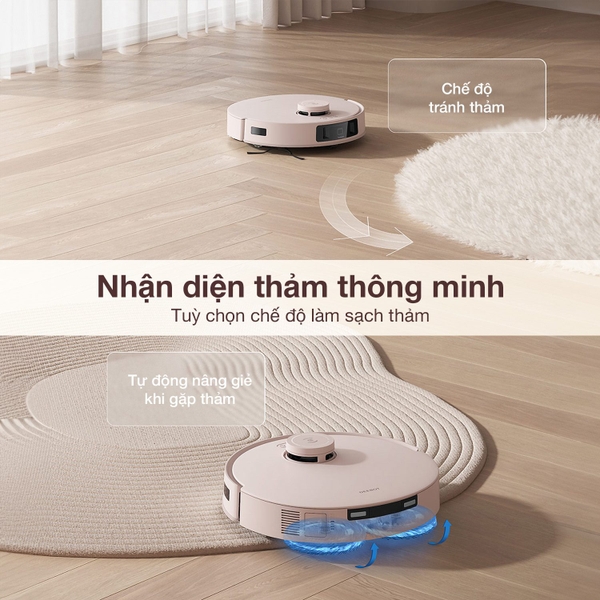 Cảm biến siêu âm tiên tiến giúp robot hút bụi Deebot T30 Pro Omni tự động nhận diện khu vực có thảm ở trong nhà một cách dễ dàng. Tùy theo loại thảm phát hiện được, robot sẽ tự lựa chọn chế độ làm sạch phù hợp, đảm bảo hiệu quả làm sạch sâu mà không gặp vấn đề như gây ướt thảm hoặc khả năng di chuyển qua khu vực thảm.