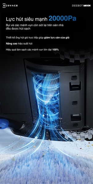 Robot hút bụi lau nhà Ecovacs Deebot T30C được trang bị động cơ công suất cao kết hợp với thiết kế ống dẫn khí tối ưu, giúp robot đạt được lực hút siêu mạnh lên tới 20.000Pa – một trong mức lực hút hàng đầu hiện nay trong các dòng robot hút bụi lau nhà.