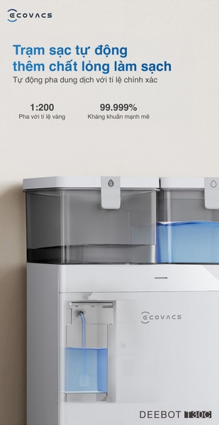 Không chỉ tự cấp nước, Deebot T30C còn sở hữu tính năng thông minh tự động pha và thêm nước lau sàn vào quy trình vệ sinh, mang lại khả năng chăm sóc sàn nhà chuyên nghiệp hơn. Pha tự động theo tỷ lệ chuẩn 200:1 giữa nước sạch và dung dịch nước lau sàn chuyên dụng, giúp đảm bảo hiệu quả làm sạch và đồng nhất trong mọi lần lau. Kháng khuẩn mạnh mẽ đến 99.99%, loại bỏ nấm mốc, vi khuẩn và các tác nhân gây hại thường trú trên sàn nhà – đặc biệt hữu ích trong gia đình có trẻ nhỏ hoặc thú cưng.