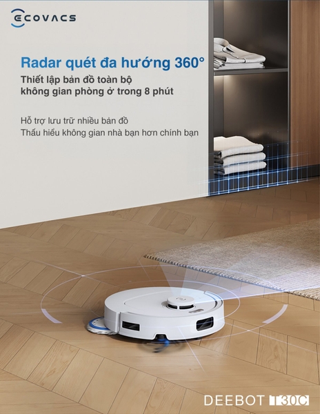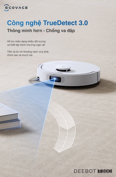Bên cạnh đó, công nghệ TrueDetect 3.0 đã được nâng cấp, sử dụng ánh sáng có cấu trúc, tia laser hồng ngoại và cảm biến độ sâu để xác định đường viền của vật thể. Nhờ đó có thể quét và nhận diện vật thể một cách chính xác đến từng milimet, tránh chướng ngại vật hiệu quả hơn. Điều này giúp robot hút bụi lau nhà Ecovacs Deebot T30C di chuyển mượt mà, giảm thiểu va chạm, kẹt hoặc vướng víu, đồng thời mở rộng phạm vi làm sạch và đảm bảo an toàn cho ngôi nhà của bạn.