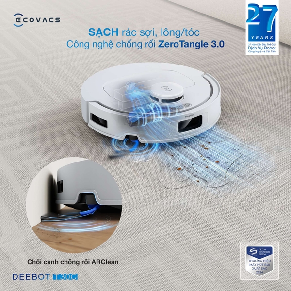 Robot hút bụi lau nhà Ecovacs Deebot T30C được trang bị công nghệ Zero Tangle 3.0 cải tiến, một bước đột phá trong việc giải quyết vấn đề tóc rối khi vệ sinh nhà cửa. Đây là phiên bản nâng cấp từ công nghệ Zero Tangle 2.0, tích hợp thêm nhiều tính năng thông minh, giúp làm sạch hiệu quả hơn mà không cần can thiệp thủ công từ người dùng.