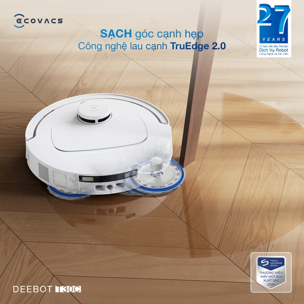 Robot hút bụi lau nhà Ecovacs Deebot T30C - 2026 mang đến trải nghiệm làm sạch hiệu suất cao và hoàn toàn tự động. Với công nghệ chống rối ZeroTangle 3.0 thế hệ mới, kết hợp lực hút mạnh mẽ 20.000Pa và công nghệ lau OZMO 2.0, Ecovacs Deebot T30C loại bỏ bụi bẩn và vết bẩn cứng đầu một cách triệt để. Hệ thống thiết lập bản đồ thông minh TrueMapping 2.0 và cảm biến lau cạnh TruEdge 2.0 giúp robot di chuyển linh hoạt, tránh né vật cản và làm sạch mọi ngóc ngách. Đặc biệt, Ecovacs Deebot T30C có trạm sạc Omni đa năng được nâng cấp với khả năng tự động giặt giẻ bằng nước nóng và sấy khô khí nóng, tự động pha dung dịch tẩy rửa, tự động vệ sinh và thu gom bụi, giúp bạn rảnh tay đến 90 ngày. Pin dung lượng lớn 5200mAh cho phép robot hoạt động liên tục 220 phút, đảm bảo làm sạch không gian rộng lớn mà không bị gián đoạn.