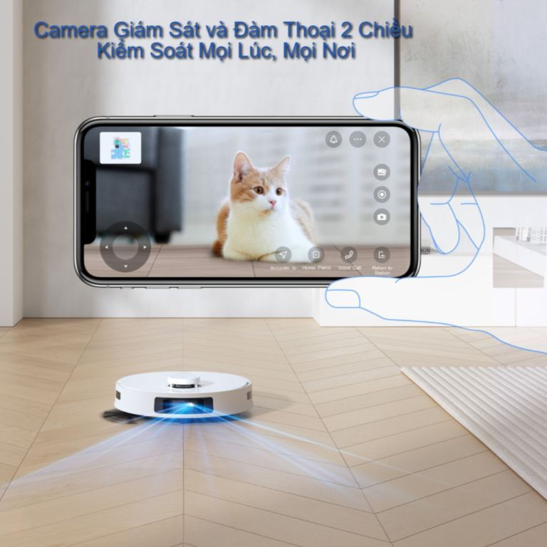 Robot hút bụi lau nhà Ecovacs T80 Omni tích hợp camera đàm thoại 2 chiều và ứng dụng quản lý video hiện đại, mang đến cho bạn trải nghiệm không chỉ dọn dẹp hiệu quả mà còn giúp kết nối với gia đình mọi lúc mọi nơi. Bạn có thể dễ dàng trò chuyện với các thành viên trong gia đình và giám sát ngôi nhà từ xa, đảm bảo an toàn cho tài sản ngay cả khi bạn không có mặt tại nhà.
