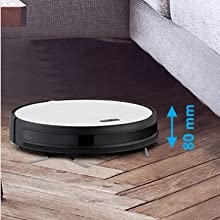 Nhờ chiều cao thấp chỉ 8 cm, robot này vừa vặn với các đồ nội thất tiêu chuẩn và do đó cho phép bạn làm sạch kỹ lưỡng và thường xuyên ngay cả ở những nơi khó tiếp cận - chẳng hạn như dưới tủ hoặc giường.