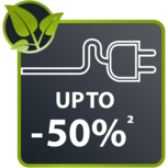 Tiết kiệm tới 50% năng lượng và bảo vệ ví và môi trường. (So với toàn bộ sức mạnh/tối đa. Cài đặt nhiệt).