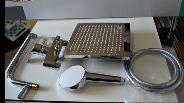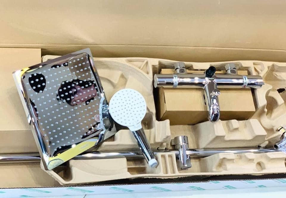 - Bao gồm: Bát sen trần, sen tay, dây cấp nước, bộ điều chỉnh nhiệt độ, thanh trượt, vòi xả phụ