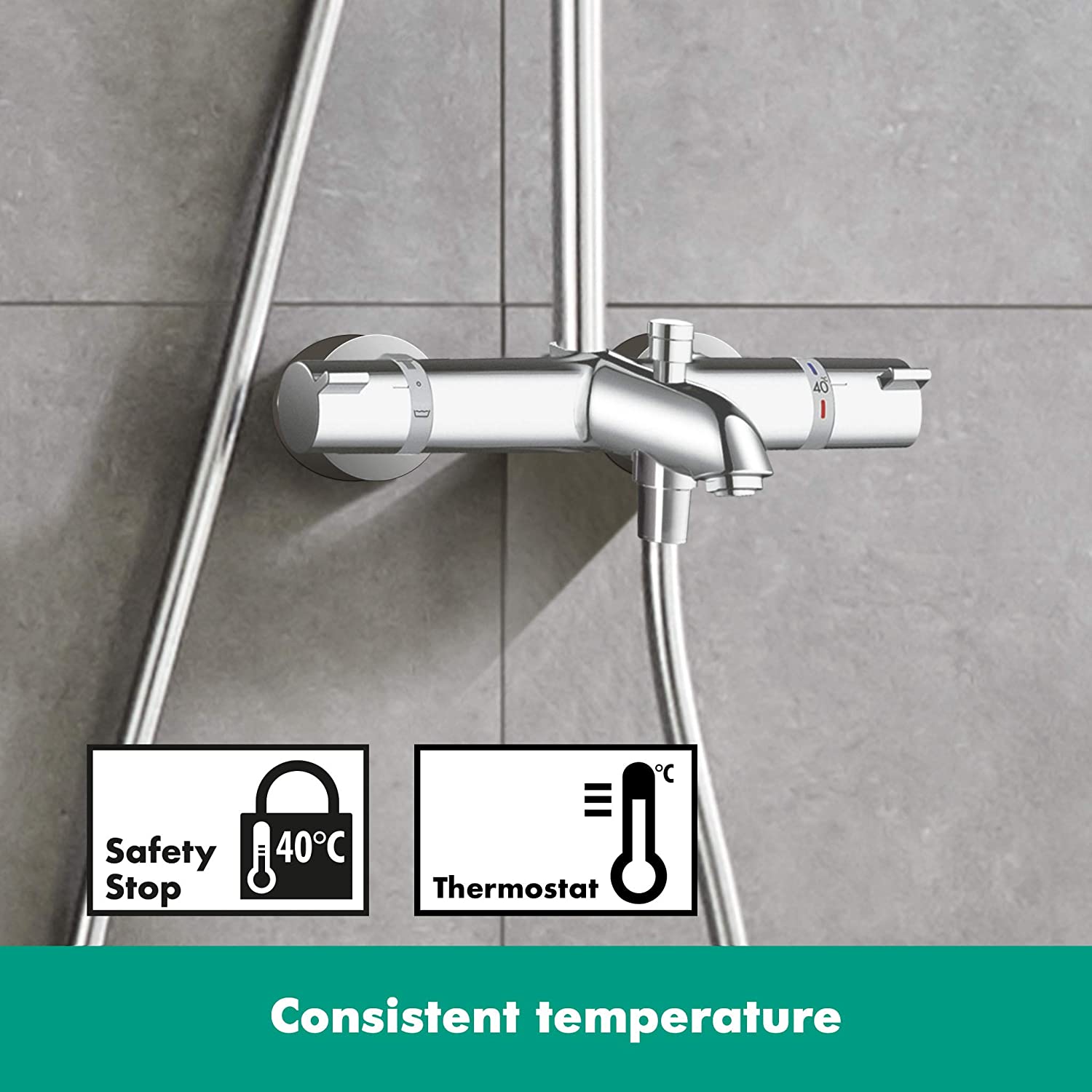 - Sử dụng bộ trộn điều nhiệt Ecostat Comfort, nhiệt độ tối đa 40°C, điều chỉnh lượng nước nóng tiêu thụ
