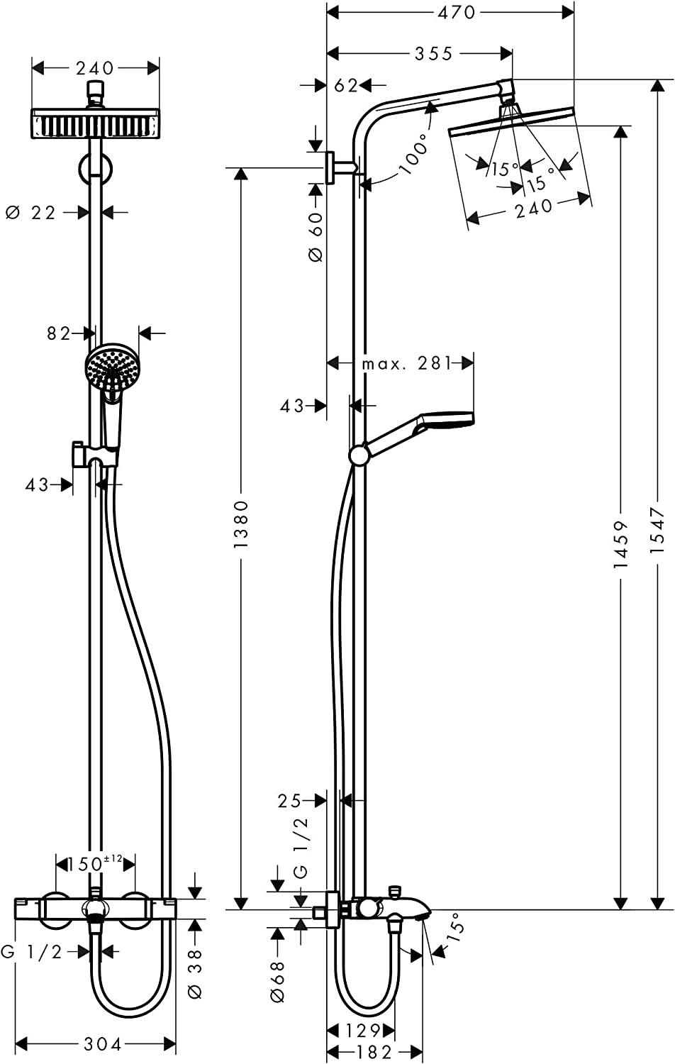 THÔNG SỐ KỸ THUẬT SEN CÂY HANSGROHE