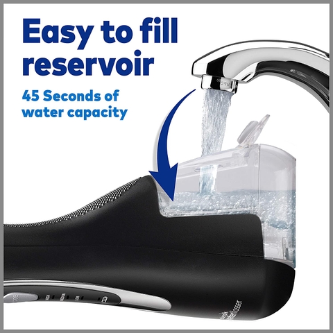 Chỉ cần đổ đầy nước vào bình chứa, hướng đầu tăm vào viền nướu và dùng chỉ nha khoa. Đổ đầy nước ấm cho răng nhạy cảm hoặc thêm nước súc miệng.