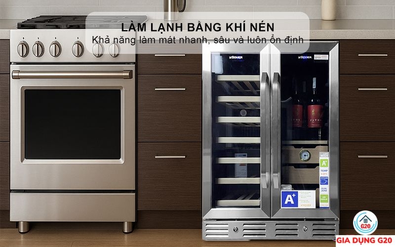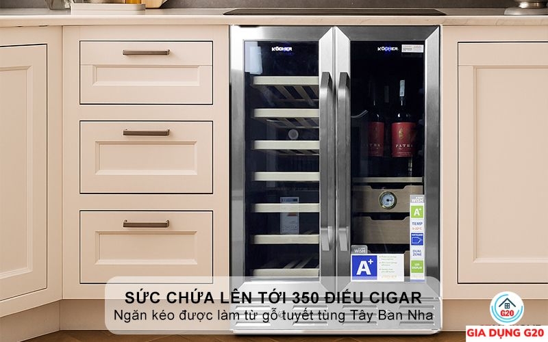 Đặc điểm nổi bật của Tủ bảo quản Rượu vang – Cigar Side by side KOCHER KCWEU-3338, Dung tích 120 lít , màu Inox