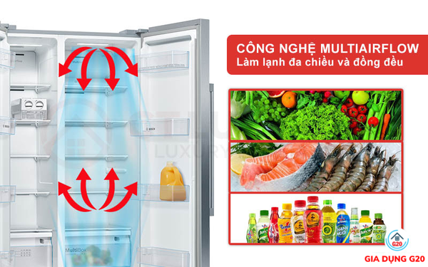 Một khi thực phẩm làm lạnh không đồng đều là do thực phẩm để xa nguồn lạnh. Hệ thống làm lạnh đa luồng Multiairflow giúp thực phẩm được làm lạnh đa chiều và đồng đều hơn.