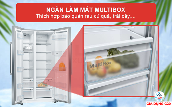 Với ngăn làm mát MultiBox của dòng Tủ Lạnh Side By Side Bosch KAN93VIFPG Series 4. Sẽ giúp cho người dùng có thể lưu trữ thêm các loại thực phẩm như rau củ quả, trái cây,... tại một vị trí phù hợp khi sử dụng.