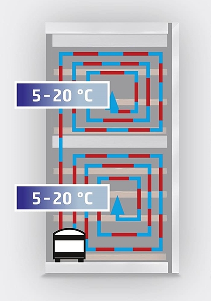 • Việc thông lưu thông luồng khí chủ động đảm bảo trong tủ bảo quản rượu Caso tạo ra nhiệt độ đồng đều.
